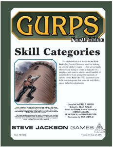 This started out as a simple document to include all the skills from the GURPS Basic Set 4e broken down into nice useable categories. It grew to where I had added in page references, difficulties, attributes, and finally defaults for all the skills in the Basic Set. Now a version of my file is available for free download - and to tell you the truth I like the official version better than my original, so I've pulled my originals from the site.