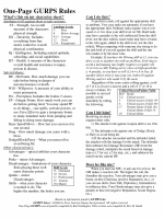 This PDF is intended to be a quick cheat sheet with the most vital information for combat laid out on a single page. A good place to print this would be on the back of One-Page GURPS.